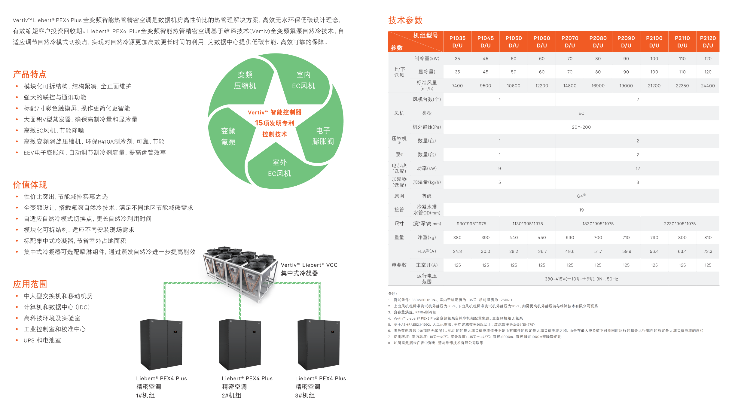 Vertiv™ Liebert® PEX4 Plus 全变频智能热管精密空调是数据机房高性价比的热管理解决方案,高效无水环保低碳设计理念,有效缩短客户投资回收期。Liebert® PEX4 Plus全变频智能热管精密空调基于维谛技术(Vertiv)全变频氟泵自然冷技术,自适应调节自然冷模式切换点,实现对自然冷源更加高效更长时间的利用,为数据中心提供低碳节能、高效可靠的保障。