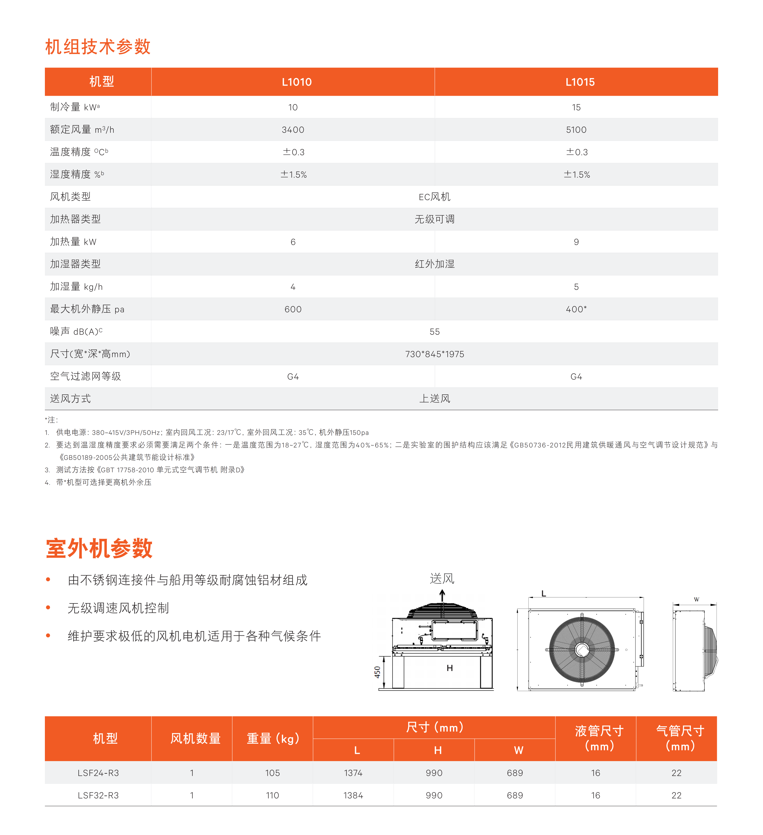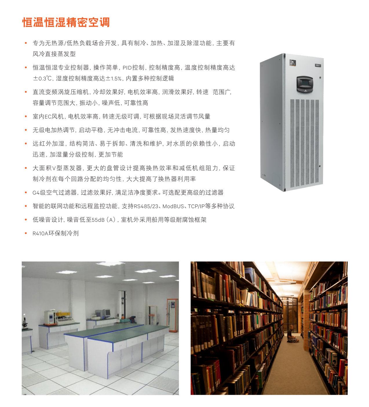 • 专为无热源/低热负载场合开发,具有制冷、加热、加湿及除湿功能,主要有风冷直接蒸发型